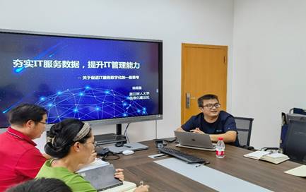 按照教职工政治理论学习坚持理论联系实际的原则,会议特邀请浙江树人大学信息化建设处陈煜嘉工程师做《夯实IT服务数据,提升IT管理能力》的主题报告。陈工根据自身16年的信息化建设和管理经验,谈了信息化建设和管理中难点和痛点,以及自己的解决思路,报告结束后和大家进行了互动交流。
