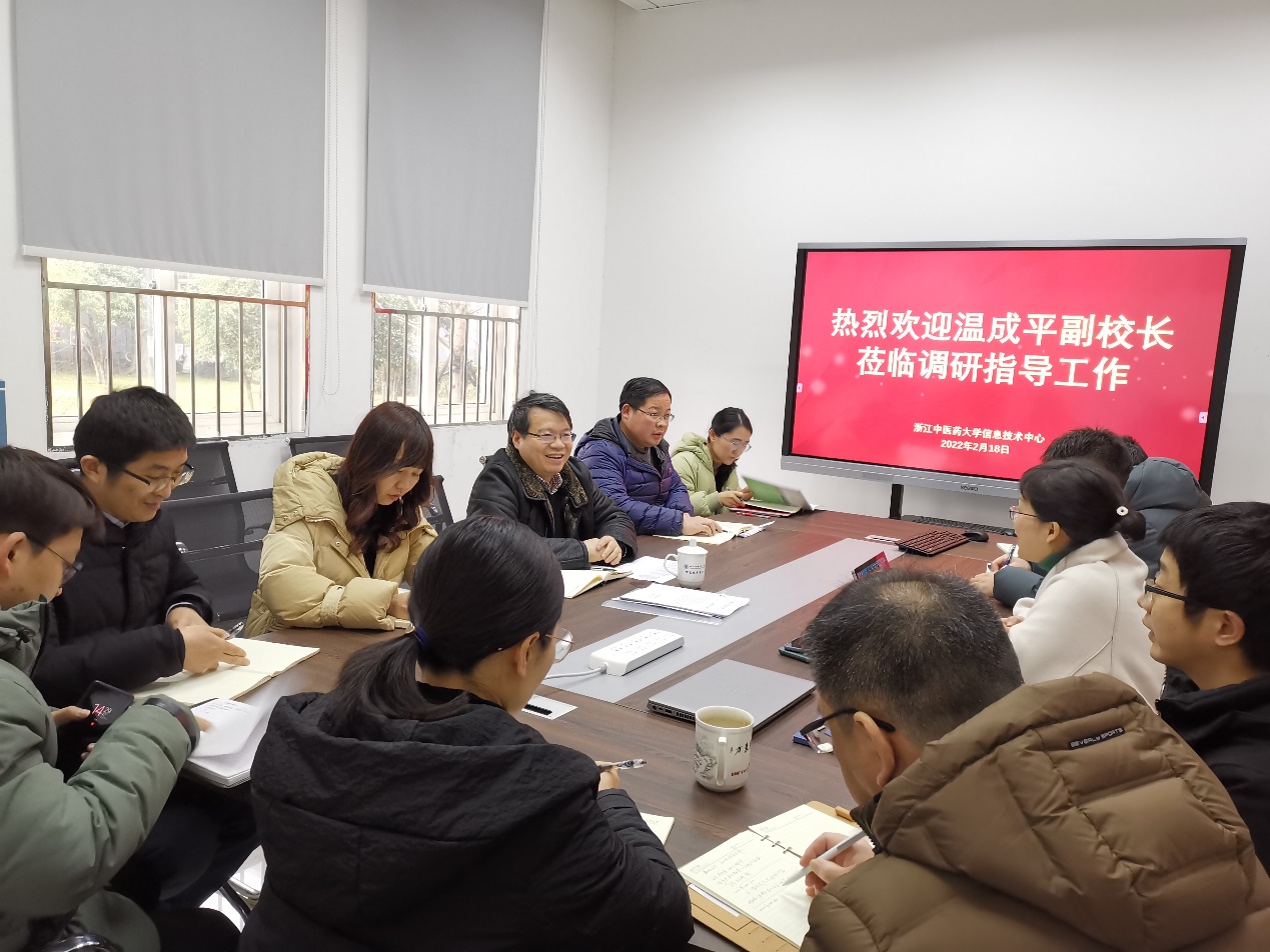 2月18日下午,温成平副校长莅临信息技术中心开展调研指导,信息技术中心全体人员参加会议。