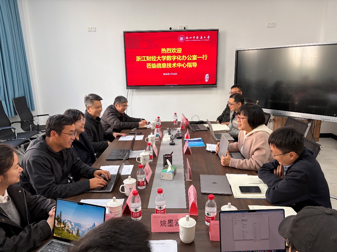 1月16日,浙江财经大学数字化办公室、现代教育技术中心主任孔琳俊一行来校开展“网络和数据安全”专题调研交流。信息技术中心主任李志敏、副主任金伟和相关负责老师参加调研交流。