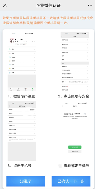 3、确认在用微信绑定的手机号码后 , 点击【已确认,下一步 】,