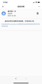 也可以通过学校微信企业号à消息中心,找到对应的待办消息提醒,点击办理。