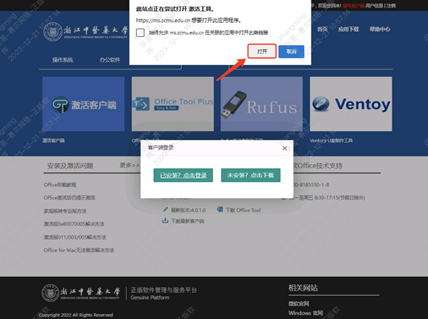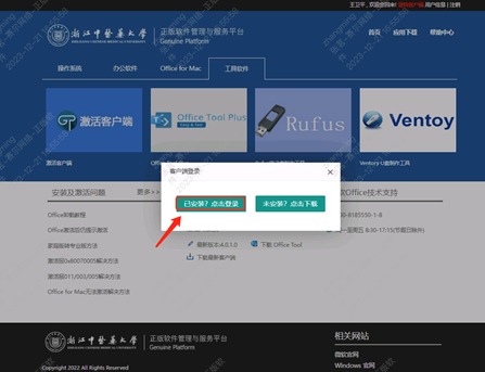 安装完成后点击主页“登录客户端”,选择“已安装?点击登录”,最后选择“打开激活工具”。界面操作如下图: